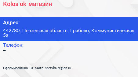 Kolos.ok, магазин по адресу 442780, Пензенская область, Грабово, Коммунистическая, 5а в дальнейшем Организация, размещена в следующих категориях: