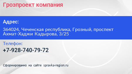 Грозпроект, компания по адресу 364024, Чеченская республика, Грозный, проспект Ахмат-Хаджи Кадырова, 3/25 в дальнейшем Организация, размещена в следующих категориях: