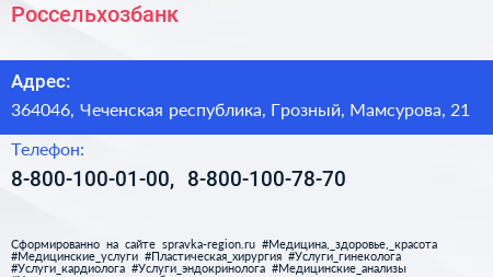 Россельхозбанк по адресу 364046, Чеченская республика, Грозный, Мамсурова, 21 в дальнейшем Организация, размещена в следующих категориях: