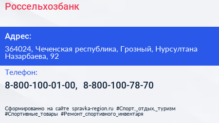 Россельхозбанк по адресу 364024, Чеченская республика, Грозный, Нурсултана Назарбаева, 92 в дальнейшем Организация, размещена в следующих категориях: