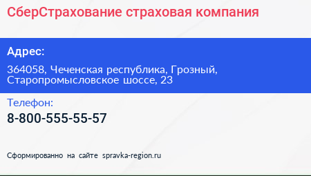 СберСтрахование, страховая компания по адресу 364058, Чеченская республика, Грозный, Старопромысловское шоссе, 23 в дальнейшем Организация, размещена в следующих категориях:
