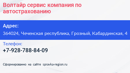 Волтайр-сервис, компания по автострахованию по адресу 364024, Чеченская республика, Грозный, Кабардинская, 4 в дальнейшем Организация, размещена в следующих категориях: