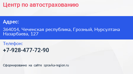 Центр по автострахованию по адресу 364014, Чеченская республика, Грозный, Нурсултана Назарбаева, 127 в дальнейшем Организация, размещена в следующих категориях:
