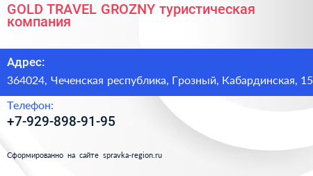 GOLD TRAVEL GROZNY, туристическая компания по адресу 364024, Чеченская республика, Грозный, Кабардинская, 15 в дальнейшем Организация, размещена в следующих категориях: