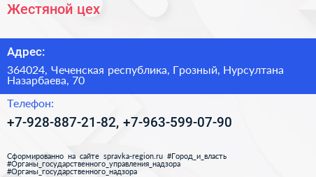 Жестяной цех по адресу 364024, Чеченская республика, Грозный, Нурсултана Назарбаева, 70 в дальнейшем Организация, размещена в следующих категориях: