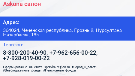 Адрес: Чеченская республика, Грозный, Нурсултана Назарбаева, 17в/3