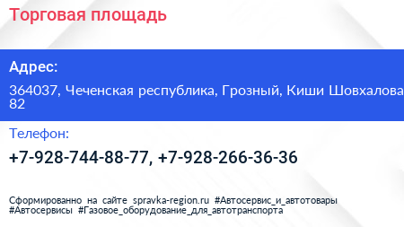 Торговая площадь по адресу 364037, Чеченская республика, Грозный, Киши Шовхалова, 82 в дальнейшем Организация, размещена в следующих категориях: