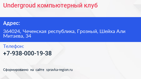 Undergroud, компьютерный клуб по адресу 364024, Чеченская республика, Грозный, Шейха Али Митаева, 34 в дальнейшем Организация, размещена в следующих категориях: