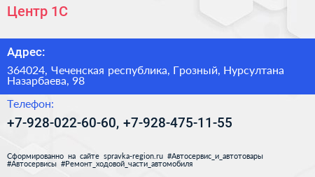 Центр 1C по адресу 364024, Чеченская республика, Грозный, Нурсултана Назарбаева, 98 в дальнейшем Организация, размещена в следующих категориях: