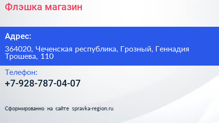 Флэшка, магазин по адресу 364020, Чеченская республика, Грозный, Геннадия Трошева, 110 в дальнейшем Организация, размещена в следующих категориях: