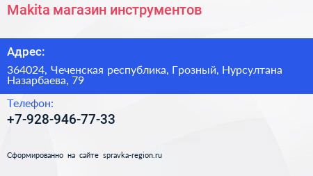 Makita, магазин инструментов по адресу 364024, Чеченская республика, Грозный, Нурсултана Назарбаева, 79 в дальнейшем Организация, размещена в следующих категориях: