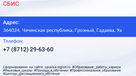 СБИС по адресу 364024, Чеченская республика, Грозный, Гадаева, 9а в дальнейшем Организация, размещена в следующих категориях: