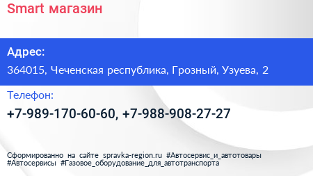 Smart, магазин по адресу 364015, Чеченская республика, Грозный, Узуева, 2 в дальнейшем Организация, размещена в следующих категориях: