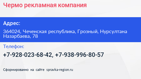 Чермо, рекламная компания по адресу 364024, Чеченская республика, Грозный, Нурсултана Назарбаева, 78 в дальнейшем Организация, размещена в следующих категориях: