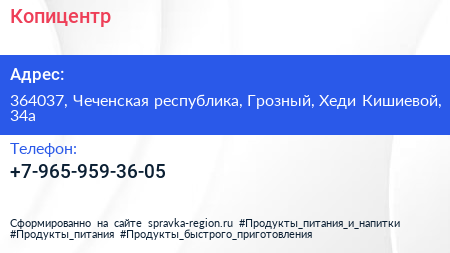 Копицентр по адресу 364037, Чеченская республика, Грозный, Хеди Кишиевой, 34а в дальнейшем Организация, размещена в следующих категориях: