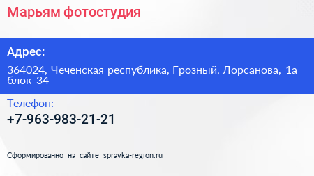 Марьям, фотостудия по адресу 364024, Чеченская республика, Грозный, Лорсанова, 1а блок 34 в дальнейшем Организация, размещена в следующих категориях: