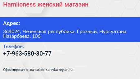 Hamlioness, женский магазин по адресу 364024, Чеченская республика, Грозный, Нурсултана Назарбаева, 106 в дальнейшем Организация, размещена в следующих категориях: