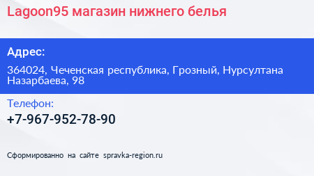 Lagoon95, магазин нижнего белья по адресу 364024, Чеченская республика, Грозный, Нурсултана Назарбаева, 98 в дальнейшем Организация, размещена в следующих категориях: