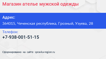 Магазин-ателье мужской одежды по адресу 364015, Чеченская республика, Грозный, Узуева, 28 в дальнейшем Организация, размещена в следующих категориях: