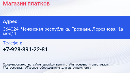 Магазин платков по адресу 364024, Чеченская республика, Грозный, Лорсанова, 1а мод11 в дальнейшем Организация, размещена в следующих категориях:
