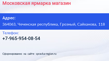 Московская ярмарка, магазин по адресу 364063, Чеченская республика, Грозный, Сайханова, 118 в дальнейшем Организация, размещена в следующих категориях: