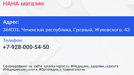 НАНА, магазин по адресу 364031, Чеченская республика, Грозный, Жуковского, 43 в дальнейшем Организация, размещена в следующих категориях: