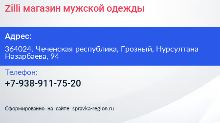 Zilli, магазин мужской одежды по адресу 364024, Чеченская республика, Грозный, Нурсултана Назарбаева, 94 в дальнейшем Организация, размещена в следующих категориях: