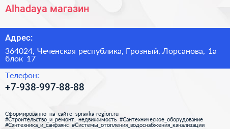Alhadaya, магазин по адресу 364024, Чеченская республика, Грозный, Лорсанова, 1а блок 17 в дальнейшем Организация, размещена в следующих категориях:
