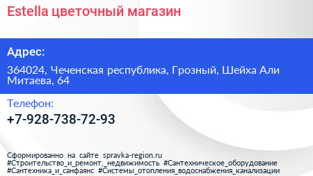 Estella, цветочный магазин по адресу 364024, Чеченская республика, Грозный, Шейха Али Митаева, 64 в дальнейшем Организация, размещена в следующих категориях: