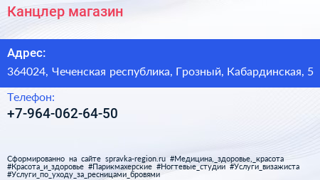 Канцлер, магазин по адресу 364024, Чеченская республика, Грозный, Кабардинская, 5 в дальнейшем Организация, размещена в следующих категориях: