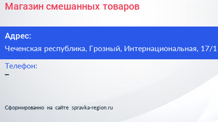 Магазин смешанных товаров по адресу Чеченская республика, Грозный, Интернациональная, 17/1 в дальнейшем Организация, размещена в следующих категориях: