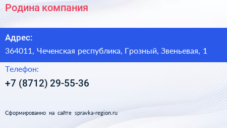 Родина, компания по адресу 364011, Чеченская республика, Грозный, Звеньевая, 1 в дальнейшем Организация, размещена в следующих категориях: