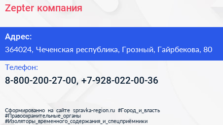 Zepter, компания по адресу 364024, Чеченская республика, Грозный, Гайрбекова, 80 в дальнейшем Организация, размещена в следующих категориях: