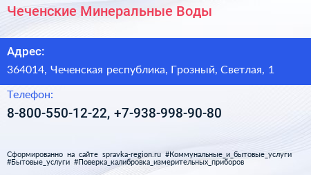 Чеченские Минеральные Воды по адресу 364014, Чеченская республика, Грозный, Светлая, 1 в дальнейшем Организация, размещена в следующих категориях:
