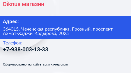 Diknus, магазин по адресу 364015, Чеченская республика, Грозный, проспект Ахмат-Хаджи Кадырова, 202а в дальнейшем Организация, размещена в следующих категориях: