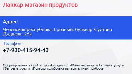 Лаккар, магазин продуктов по адресу Чеченская республика, Грозный, бульвар Султана Дудаева, 26а в дальнейшем Организация, размещена в следующих категориях: