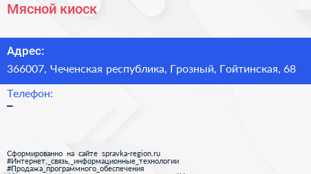 Мясной киоск по адресу 366007, Чеченская республика, Грозный, Гойтинская, 68 в дальнейшем Организация, размещена в следующих категориях:
