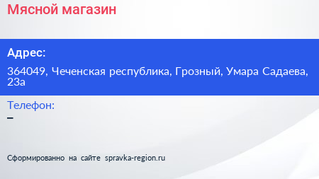 Мясной магазин по адресу 364049, Чеченская республика, Грозный, Умара Садаева, 23а в дальнейшем Организация, размещена в следующих категориях:
