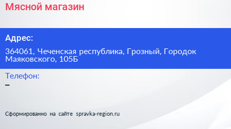 Мясной магазин по адресу 364061, Чеченская республика, Грозный, Городок Маяковского, 105Б в дальнейшем Организация, размещена в следующих категориях: