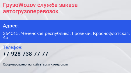 ГрузоWozov, служба заказа автогрузоперевозок по адресу 364015, Чеченская республика, Грозный, Краснофлотская, 4а в дальнейшем Организация, размещена в следующих категориях:
