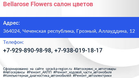 Bellarose Flowers, салон цветов по адресу 364024, Чеченская республика, Грозный, Аллауддина, 12 в дальнейшем Организация, размещена в следующих категориях: