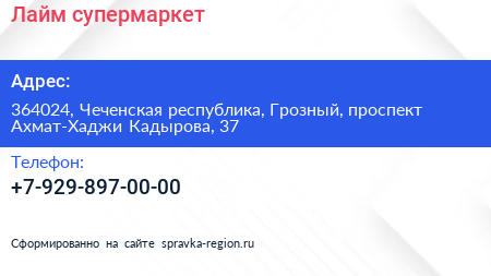 Лайм, супермаркет по адресу 364024, Чеченская республика, Грозный, проспект Ахмат-Хаджи Кадырова, 37 в дальнейшем Организация, размещена в следующих категориях: