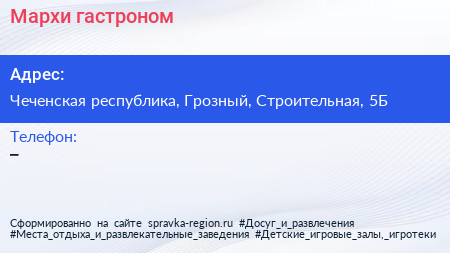 Мархи, гастроном по адресу Чеченская республика, Грозный, Строительная, 5Б в дальнейшем Организация, размещена в следующих категориях: