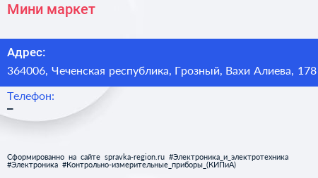 Мини-маркет по адресу 364006, Чеченская республика, Грозный, Вахи Алиева, 178 в дальнейшем Организация, размещена в следующих категориях: