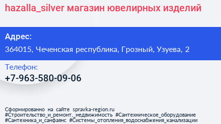 hazalla_silver, магазин ювелирных изделий по адресу 364015, Чеченская республика, Грозный, Узуева, 2 в дальнейшем Организация, размещена в следующих категориях: