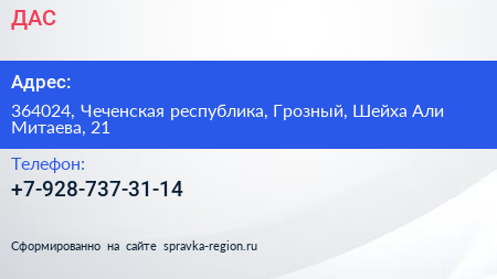 ДАС по адресу 364024, Чеченская республика, Грозный, Шейха Али Митаева, 21 в дальнейшем Организация, размещена в следующих категориях: