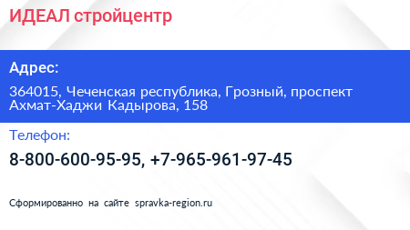 ИДЕАЛ, стройцентр по адресу 364015, Чеченская республика, Грозный, проспект Ахмат-Хаджи Кадырова, 158 в дальнейшем Организация, размещена в следующих категориях: