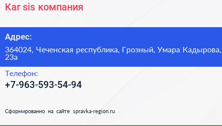 Kar-sis, компания по адресу 364024, Чеченская республика, Грозный, Умара Кадырова, 23а в дальнейшем Организация, размещена в следующих категориях: