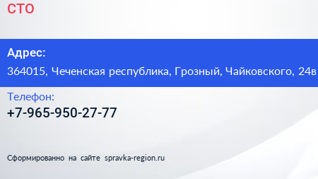 СТО по адресу 364015, Чеченская республика, Грозный, Чайковского, 24в в дальнейшем Организация, размещена в следующих категориях: