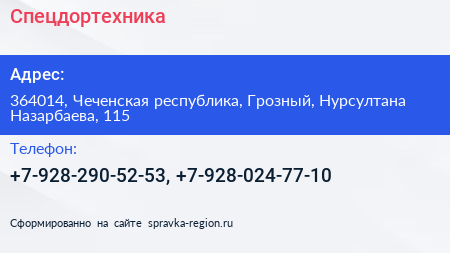 Спецдортехника по адресу 364014, Чеченская республика, Грозный, Нурсултана Назарбаева, 115 в дальнейшем Организация, размещена в следующих категориях:
